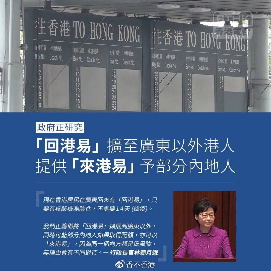 來港易計劃 英文. 非港人來港有望 廣東區先行 本報訊本港與內地遲遲無法通關港府日前更因應內地疫情發展收緊回港易計劃 特首林鄭月娥近日接受內地傳媒訪問港府稍後將恢復在上海的港人可經計劃免檢疫回港亦會盡快推出非港人來港易計劃先導計劃. 至於豁免本港居民14天檢疫的回港易計劃本月底起會由廣東擴展至其他內地省市 由5月中起亦會推出讓香港居民以外的內地人士以來港. 本港新冠肺炎疫情漸趨緩和特首林鄭月娥今日12 日宣布港府將會以疫苗氣泡作為基礎調整各項防疫措施包括各種出入境安排當中政府會在 5 月中推出來港易全中國的非港人來港均可免檢疫 1.
