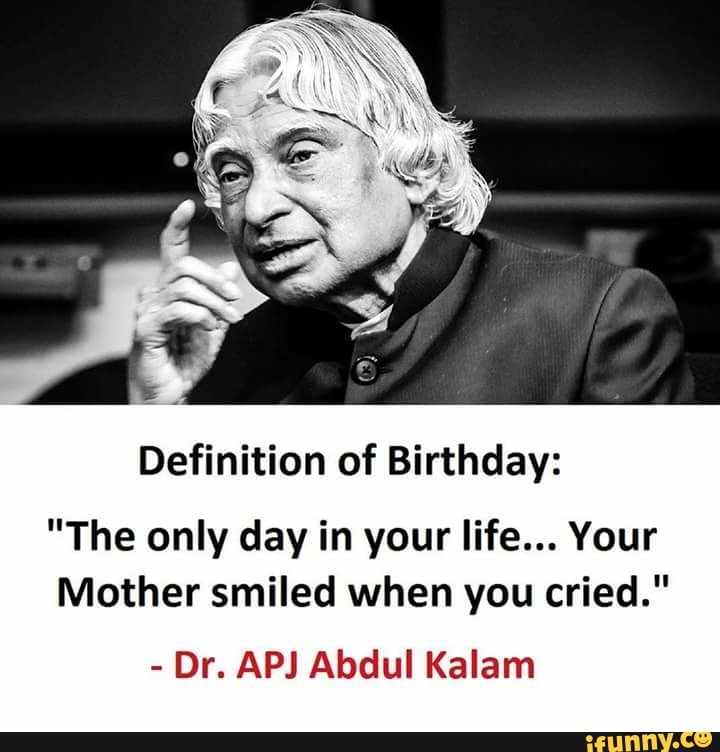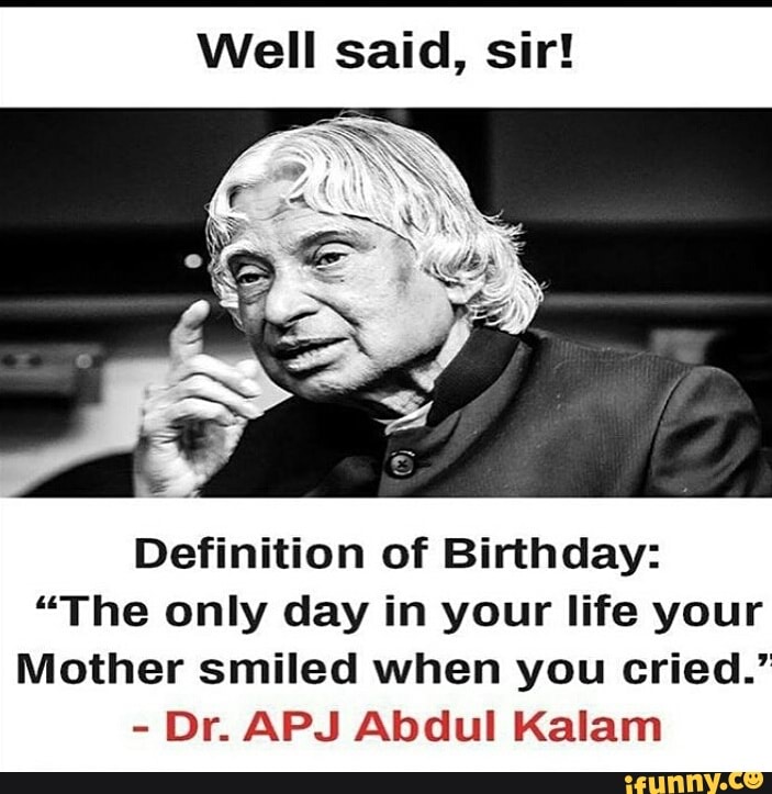 Well Said Sir Definition Of Birthday The Only Day In Your Life Your Mother Smiled When You Cried Dr Apj Abdul Kalam Y